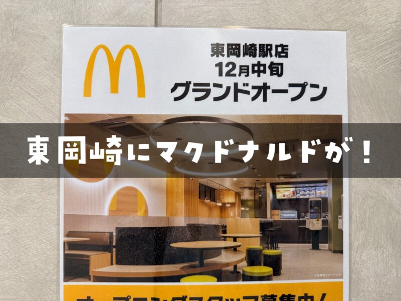 少し前から話題になっていましたが、東岡崎駅直結の商業施設「SWINGMALL(スイングモール)」の1階に『マクドナルド』が12月中旬にオープンします。 先日、スイングモールに立ち寄った時に、オープニングスタッフ募集のチラシも貼ってありました。 東岡崎... -